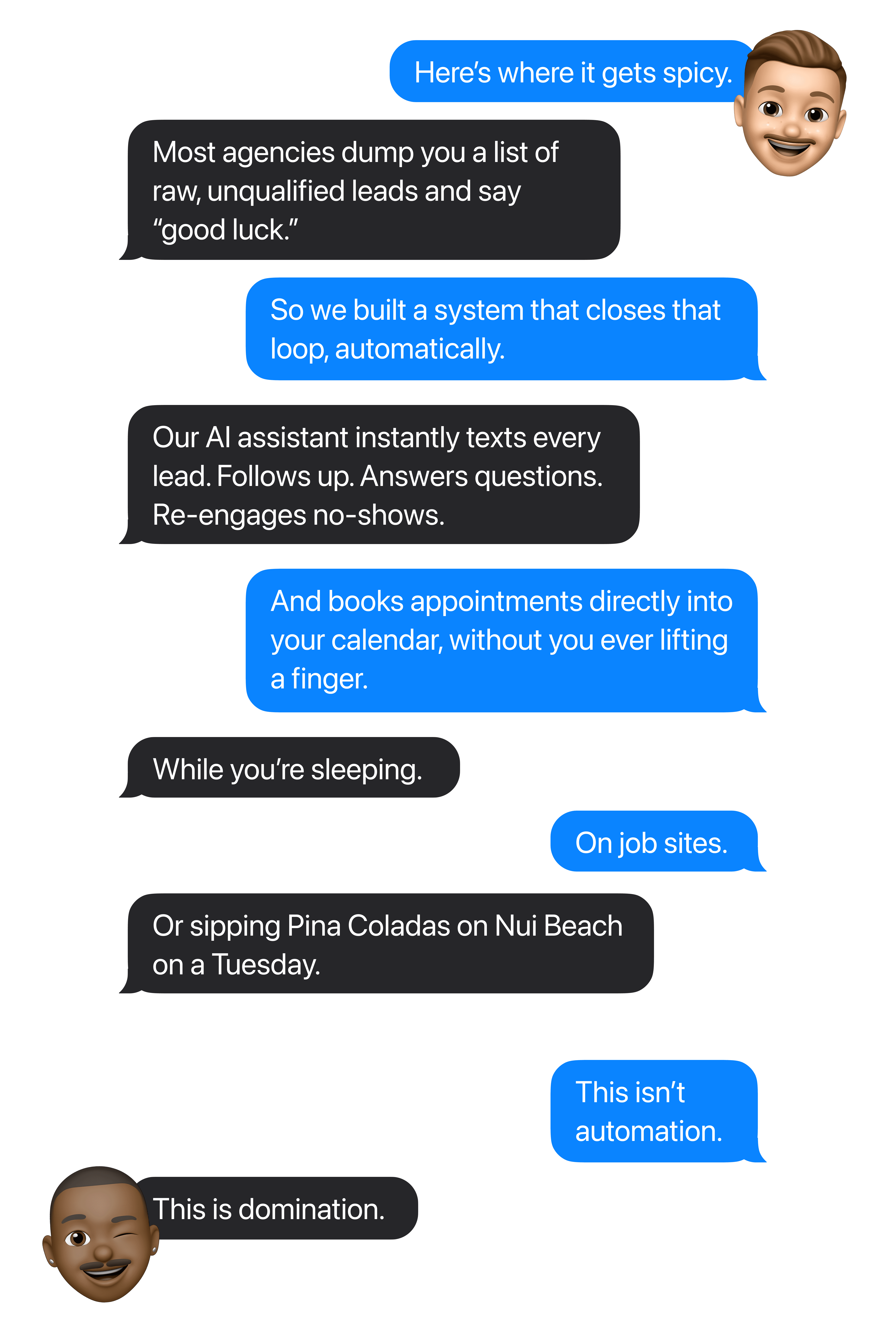 Just a done-for-you, AI powered pipeline that books qualified buyers, sellers, or investors into your calendar so you can focus on closing, not chasing.